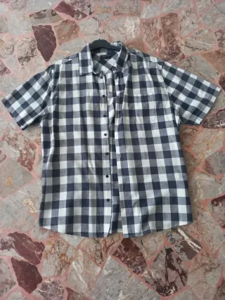 Camicia a maniche corte con fantasia a quadri. - Tessuto leggero e traspirante. - Chiusura con bottoni. - Taschino sul petto.