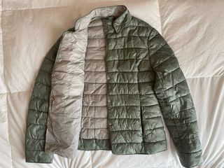 Giubotto imbottito leggero (stile 100 grammi) color verde. Pratico e morbido,adatto alle mezze stagioni. Non si stropiccia. Taglia 44 italiana (lunghezza 56 cm,spalle 38 cm,vita 44 cm,manica esterna 59 cm,manica intera 44 cm).