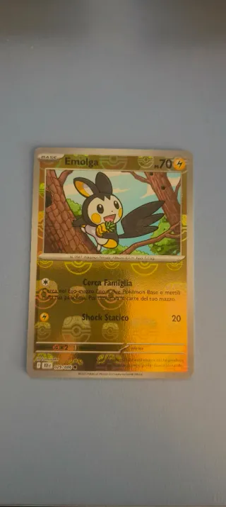 Carta Pokémon di Emolga, numero 0587. - Tipo Base. - PS 70. - Attacco: Cerca Famiglia. - Abilità: Shock Statico. - Illustratore: Tomonaka. - Codice carta: 029/086.