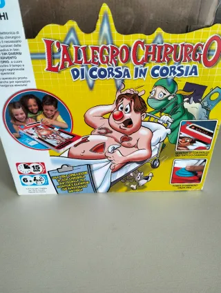 Gioco da tavolo L'Allegro Chirurgo in ottime condizioni. Un classico per sfide di abilità. - Include tutti i pezzi necessari per il gioco. - Funziona con batterie incluse - Adatto dai 6 anni in su.