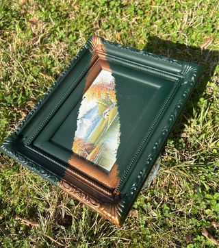 Un pezzo unico che unisce stile antico e moderno, perfetto per aggiungere un tocco di originalità alla tua casa. - Cornice con finiture oro e verde. - Materiali misti per un design ricercato.