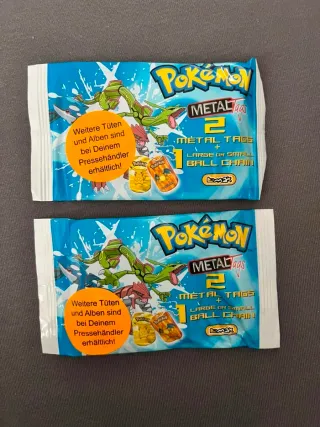 Due bustine originali Pokémon Metal Tags, un pezzo da collezione per veri fan e collezionisti.