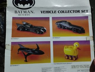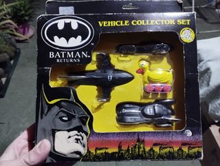 Set di veicoli da collezione di Batman Returns. - Realizzati in metallo. - Include Batmobile, Batwing e Paper Bat. - Prodotto negli anni '90.
