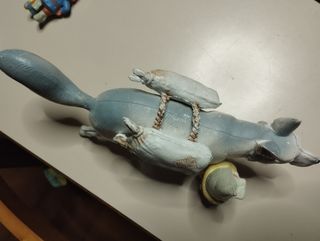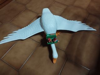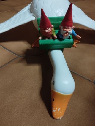 Oca bianca con ali spiegate, parte della serie David lo Gnomo. - Personaggi inclusi: 2 gnomi. - Carrello verde sul dorso dell'oca.
