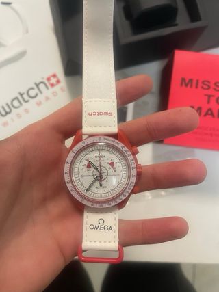 Orologio Swatch x Omega MoonSwatch Mission to Mars. - Cassa in bioceramica. - Collezione Moonswatch.