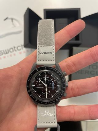 Orologio Swatch x Omega della collezione MoonSwatch. - Modello Mission to Mercury. - Cassa in bioceramica. - Cinturino grigio.