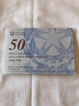 Moneta commemorativa da 10,000 Lire in Argento - Celebra la Proclamazione della Repubblica Italiana (1946-1996). - Valore nominale: 10.000 Lire. - Emissione: 1996.