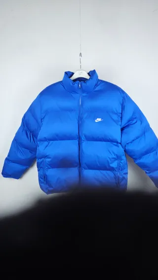 Piumino Nike di colore blu, perfetto per le giornate più fredde. - Logo Nike ricamato sul petto. - Chiusura con zip frontale. - Tasche laterali con zip.