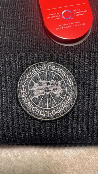 Berretto in maglia di Canada Goose. Un accessorio caldo e alla moda. - Logo Canada Goose Arctic Program sul davanti. - Design a coste.