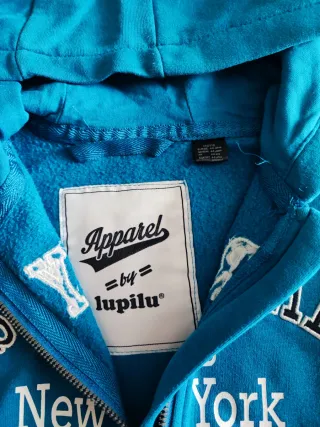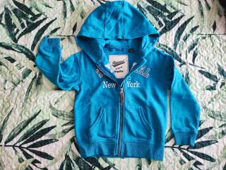 Felpa blu con cappuccio e zip, perfetta per i più piccoli, all'interno felpata. - Taglia 4/6 anni. - Stampa New York sul davanti.