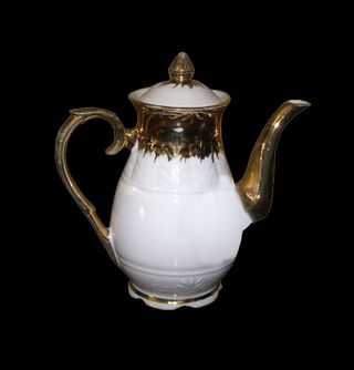 Elegante caffettiera in porcellana della marca Bavaria. Presenta finiture dorate che aggiungono un tocco di raffinatezza. Dimensioni: cm 19 x 9 Altezza cm 18 - Materiale: Porcellana - Marca: Bavaria - Dettagli: Finiture dorate