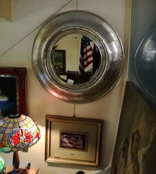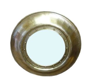 Elegante specchio rotondo con una cornice che combina finiture in foglia oro e argento. - Cornice decorata con rivetti. - Design circolare.