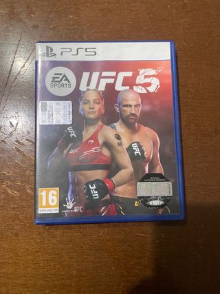 Videogioco UFC 5 per PlayStation 5. - Copertina con i lottatori Valentina Shevchenko e Alexander Volkanovski. - Classificazione PEGI 16. - Prodotto con licenza ufficiale.
