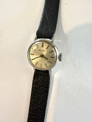 Elegante orologio da polso Bulova da donna con cassa in acciaio e cinturino nero. REFERENZA 2-43743 - Quadrante con indici. - Movimento Swiss Made.