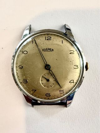 Orologio da polso Roamer vintage con quadrante beige e cassa in acciaio inossidabile da 35mm. Movimento a carica manuale. REFERENZA 9095864 - Design classico. - secondina