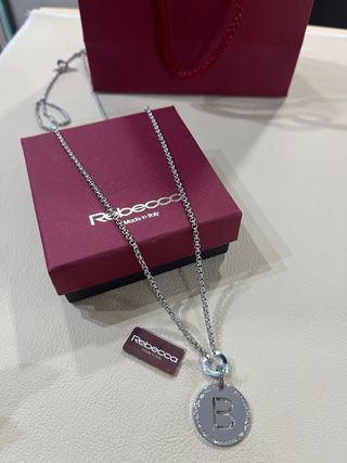Bellissima collana Rebecca con ciondolo a forma di iniziale B. - Ciondolo rotondo con bordo decorato. - Catena sottile in argento lunga 85 cm - Logo Rebecca inciso sul ciondolo.