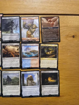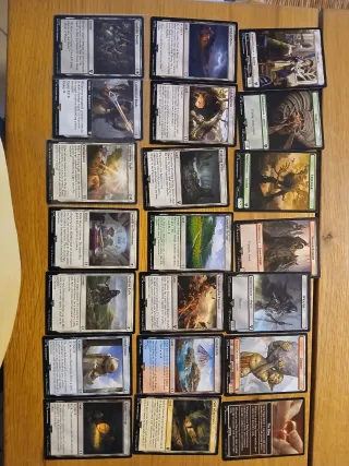 Carte di Magic: The Gathering, ambientate nell'universo de Il Signore degli Anelli. 21 carte commander tra cui token In inglese mai usate - Fred the Swarms - Field of Ruin - Ask Barrens - Lochirion Blade - Banishing Light - Grapple with the Past - Pack to Exile - Mind Stone - Sulfur Falls - Goblins Ecc.