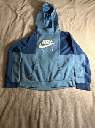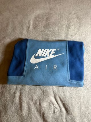 Felpa con cappuccio Nike Air per bambino, con un design color-block che alterna diverse tonalità di blu. - Logo Nike Air stampato sul petto. - Tasca a marsupio frontale. - Cappuccio con fodera interna.