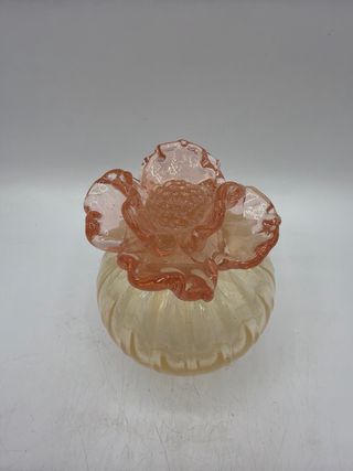 Vaso decorativo in vetro con un design floreale unico simile ad un cactus - Base sferica dorata con decorazioni a margherita. - Parte superiore a forma di tulipano in vetro bianco/rosa ma e’ chiuso non ha foro vintage ma non ha imperfezioni o crepe alto cm 22