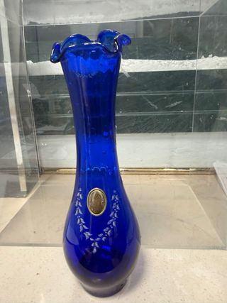 Vaso blu cristallo con placca argento