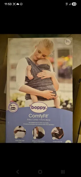 Fascia Boppy ComfyFit per portare il tuo bambino. Adatta dalla nascita. - Colore grigio mélange. - Tessuto morbido e traspirante. - Facile da indossare e regolare.