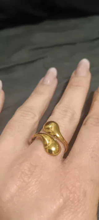 Elegante anello color oro, con un design moderno e raffinato. - Forma a goccia stilizzata - Finitura lucida