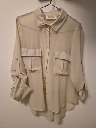 Camicia da donna dal design leggero e trasparente. - Tessuto leggero e arioso. - Dettagli con tasche sul petto. - Maniche lunghe arrotolabili. - Collo classico.