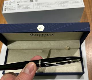 Penna stilografica Waterman Carene, nera, finiture cromate, fusto in metallo, con il famoso pennino inlaid in oro rodiato 18 kt misura F, caricamento a cartuccia o converter. Penna perfettamente funzionante, in ottime condizioni, visibile qualche normale segno da uso sul fusto in controluce. Dotazione completa come da foto, scatola, controscatola, converter e cartuccia di cortesia.