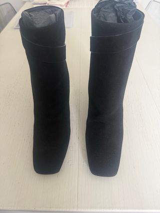 Elegante tronchetto in camoscio nero, un classico intramontabile. - Materiale scamosciato. - Dettaglio cinturino. - Punta quadrata.