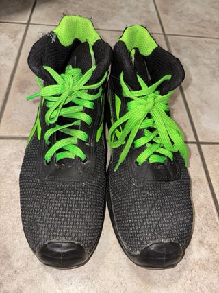 Scarpe antinfortunistiche U-Power. - Design alto. - Lacci verdi. - Logo verde sul lato.