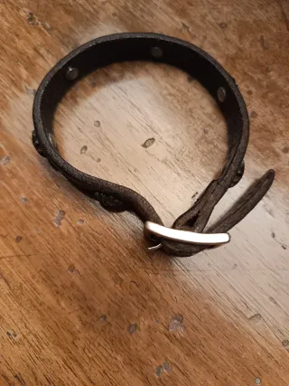 Elegante braccialetto in pelle, perfetto per aggiungere un tocco di stile. - Materiale: Pelle - Dettagli: Borchie metalliche - Chiusura: Fibbia regolabile