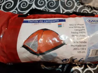 Tenda da campeggio MGI, ideale per 2 persone. Realizzata in poliestere. - Dimensioni montata: 205 x 150 x 105 cm. - Materiale: 100% poliestere. "In vendita solo il telo" , mancano picchetti e archi
