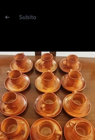 Set di 12 boccali in ceramica con decorazioni. - Realizzati in terracotta. - Colore marrone e arancione. - Decorazioni floreali e di ciliegie.