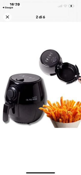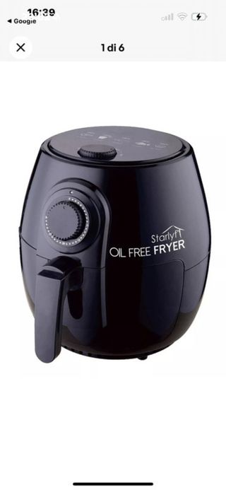 Friggitrice ad aria Starlyf Oil Free Fryer, di colore nero. - Design compatto ed elegante. - Manopola per la regolazione della temperatura e del tempo.