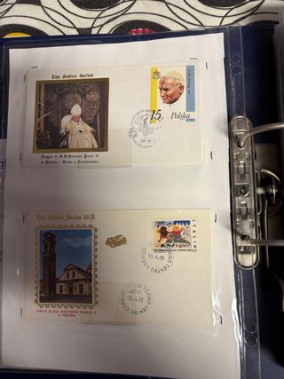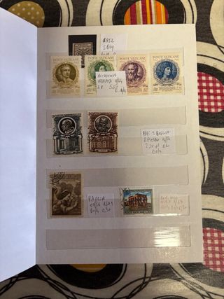 Due album per la raccolta di francobolli dello Stato Vaticano. Contengono diverse emissioni. Vendo 2 album con raccolta francobolli emissione Stato Vaticano dal 1943 in poi la maggior parte nuovi fior di stampa ed la maggior parte serie complete di tutte le uscite dell’anno. Valore di mercato oltre 200 euro. Altre foto a richiesta