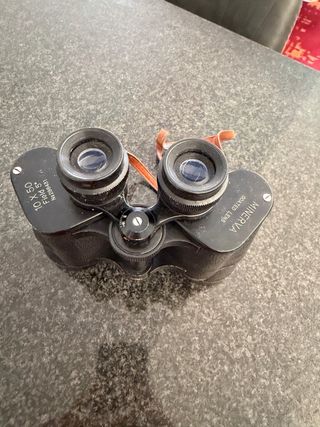 Binocolo Minerva con ingrandimento 10x50. - Corpo in metallo nero. - Lenti con trattamento ottico. - Regolazione messa a fuoco centrale.