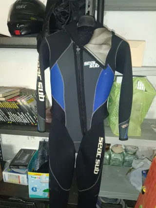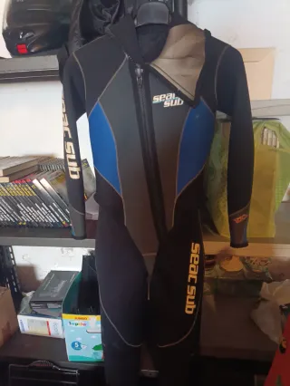 Muta da subacquea Seac Sub. - Muta intera con cerniera frontale. - Inserti blu e grigi. - Logo Seac Sub sulle maniche e sul petto. Veste misura M
