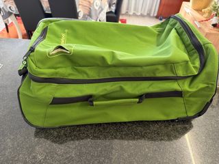 Borsone da viaggio Newfeel di colore verde. - Manici resistenti. - Zip per chiusura principale. - Ruote per facilitare il trasporto. -Misure 52x35x25.