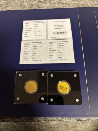6 Monete Oro Fino 999 24k 20mm Gabon con cofanetto