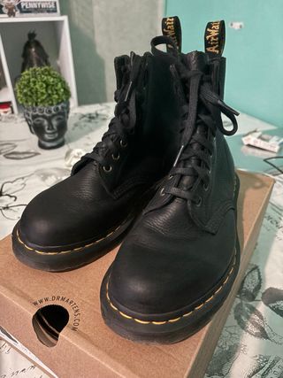 Stivali Dr. Martens modello Pascal. - Tomaia in pelle martellata. - Chiusura con lacci. - Iconica suola Goodyear welt. - Linguetta posteriore con logo AirWair. Originali. Tenute bene.
