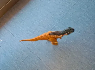 Dinosauro giocattolo ispirato a Jurassic World. Questo dinosauro ha una colorazione arancione vivace con dettagli neri e bianchi. Batterie scariche. - Dettagli realistici. - Ideale per collezionisti e appassionati.