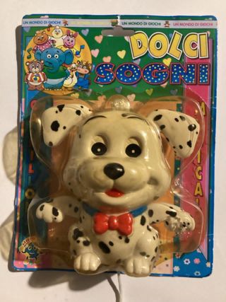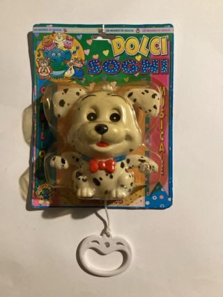 Carillon musicale a forma di cane dalmata, ideale per la cameretta dei più piccoli. Il carillon è parte della linea Dolci Sogni. - Design a forma di cane dalmata con fiocco rosso. - Include un filo con un anello per attivare la melodia. - Immagini colorate sul packaging con personaggi animati. - A suono della melodia muove le orecchie, zampe e occhi