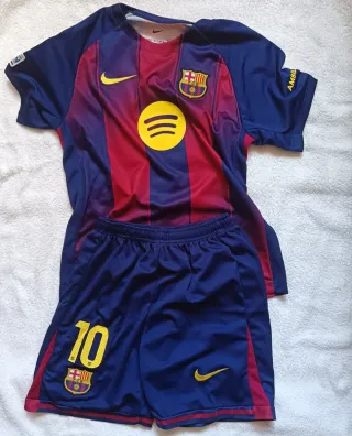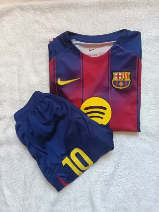 Completo da bambino del Barcellona, marca Nike. - Maglia a maniche corte con logo e scudo. - Pantaloncini blu con numero 10. PREZZO LEGGERMENTE TRATTABILE.