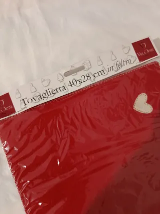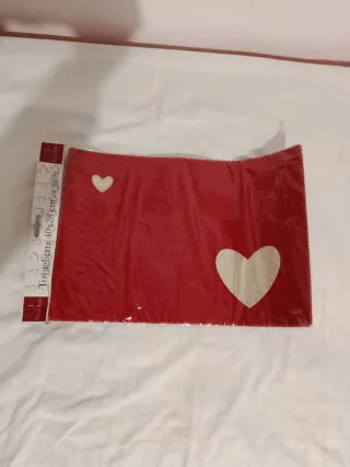 Tovaglietta decorativa con un design a tema cuore. - Colore rosso vivace. - Dettagli a forma di cuore. - Dimensioni: 40x28 cm.