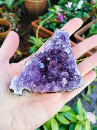 Bellissima drusa di Ametista dall'Uruguay da 122 grammi, in omaggio un esemplare di ossidiana da 2/3 cm - Peso: 122 grammi. - Colore: viola intenso con sfumature. - Forma: drusa irregolare.