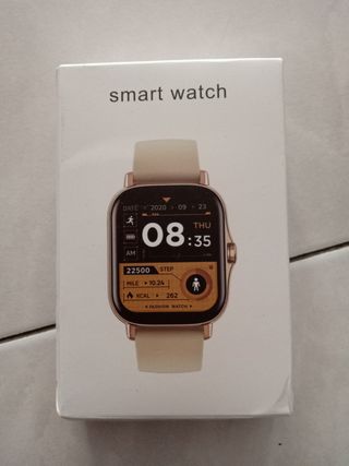 Smartwatch con cinturino beige e cassa color oro. - Display touch. - Funzioni fitness: contapassi, distanza percorsa e calorie bruciate. - Indicatore data e giorno della settimana.