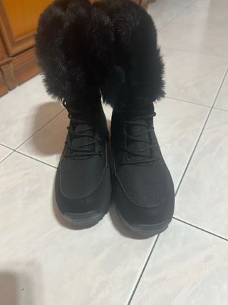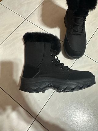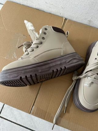 Scarpe invernali con fodera in pelliccia sintetica. - Dettaglio con etichetta numerata. - Suola spessa e resistente. - Lacci beige.