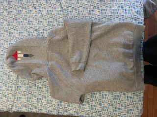 Felpa con cappuccio grigia, comoda e versatile. - Logo colorato sul cappuccio
