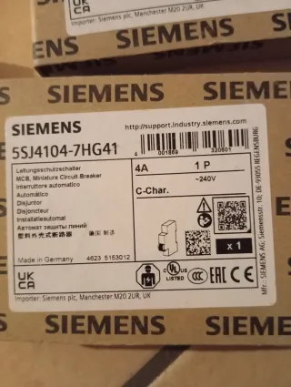 Interruttori magnetotermico Siemens. - Modello: 5SJ4104-7HG41 - Corrente nominale: 4A - Curva di intervento: C - Tensione nominale: ~240V - Numero di poli: 1 P - Quantità: x 1 - Prodotto in Germania 10 euro per entrambi