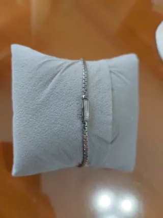Elegante bracciale da donna in argento, impreziosito da un diamante. - Design raffinato. - Dettaglio con diamante incastonato.